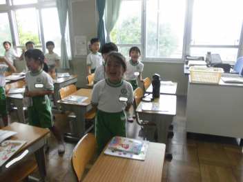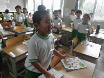 •  1年生の教室から、明るく元気な歌声が聴こえてきました。