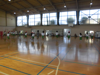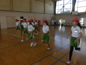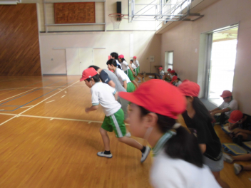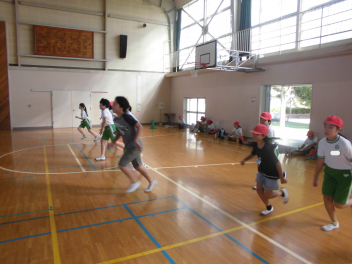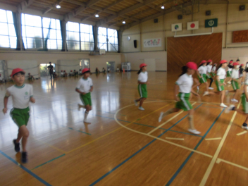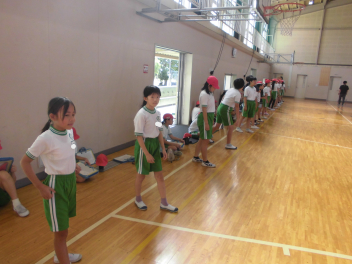 •  この日は、体育館で5年生が20mシャトルランに挑戦していました。