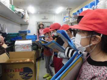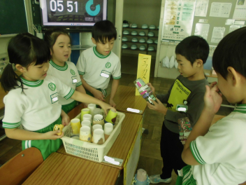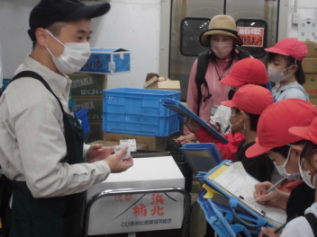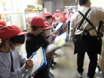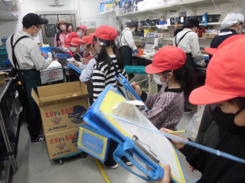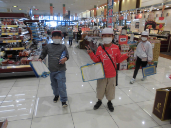 今日は、4組の子供たちが見学に行きました。スーパーマーケットでは、普段見ることができないバックヤードの中の様子を見学したり、買い物に来ているお客様にインタビューをしたりしました。