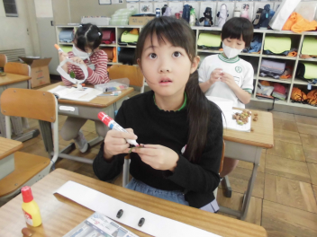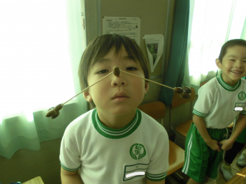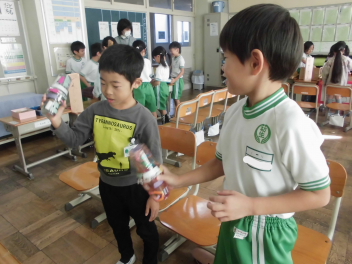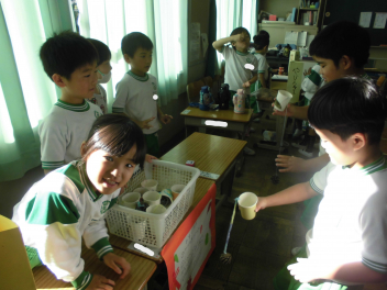 •  この日、5年生が理科室で実験を行っていました。