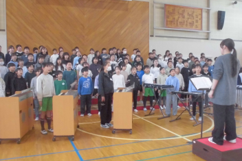 この日は、音楽の専門の先生を講師としてお招きし、6年生が合唱練習に取り組んでいました。