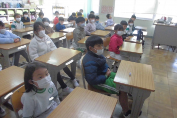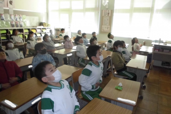 •  朝の活動の時間に、3年生が自分たちのお気に入りの本を1年生に紹介しました。