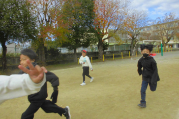 •  4年生の体育科の学習では、「タグラグビー」に挑戦しています。