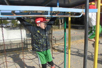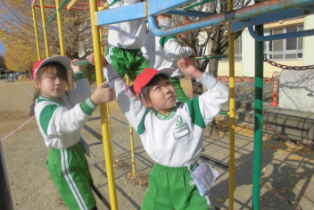 この日も、休み時間に友達と遊具に集まって、いろいろな遊びを工夫しながら楽しんでいました。