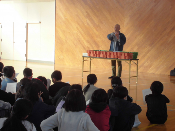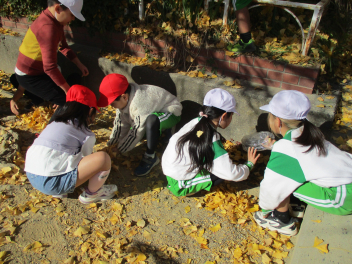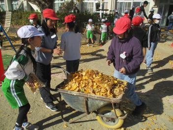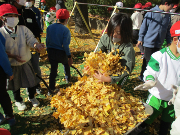 •  初生小を彩ってくれたイチョウの葉が、冬の風に舞い落ち、校庭には黄色の落ち葉が広がっていました。