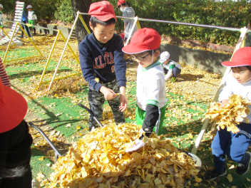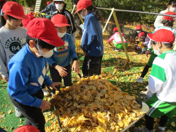 プロジェクト当日、たくさんの子供たちが参加し、力を合わせて落ち葉を拾ってくれました。