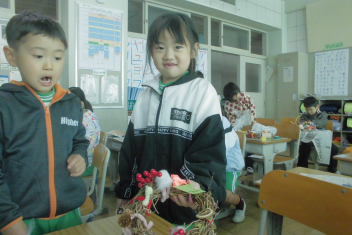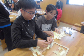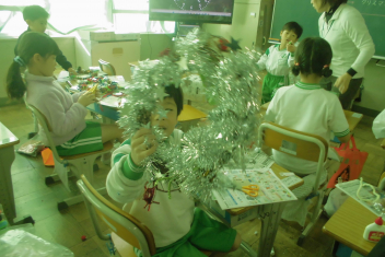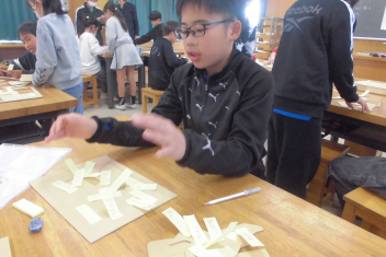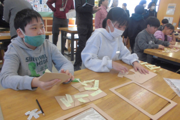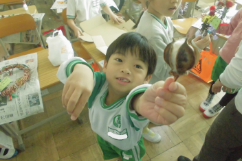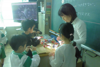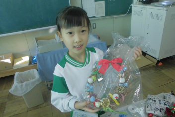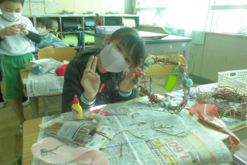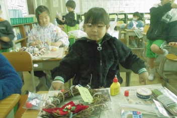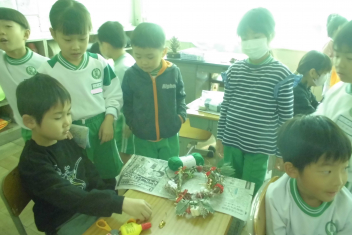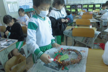 •  1年生は、生活科の学習でリース作りに挑戦しました。