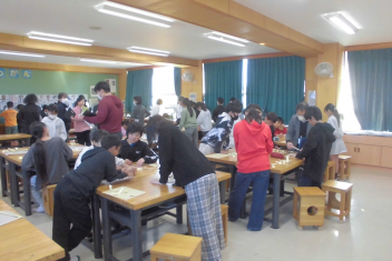•  3年生以上の学年は、書写の時間に「書初め」に挑戦しています。