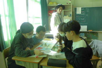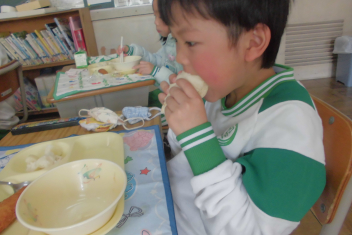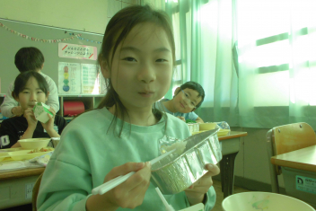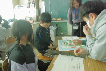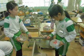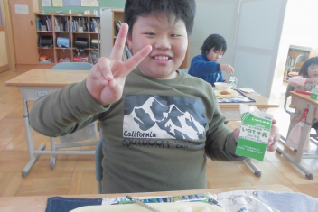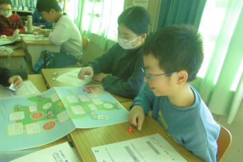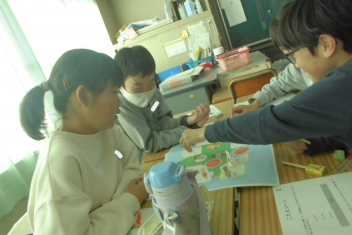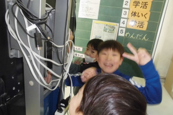 •  1年生の教室から、楽しそうな声が聞こえてきました。
