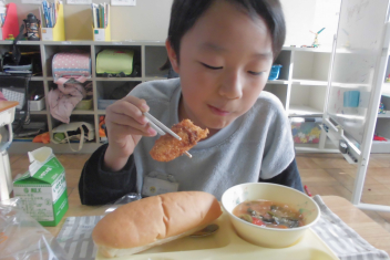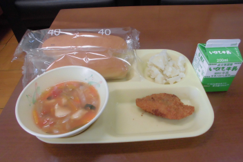 パン、牛乳、たらフライ、じゃがいものミルク煮、玄米入りトマトスープ