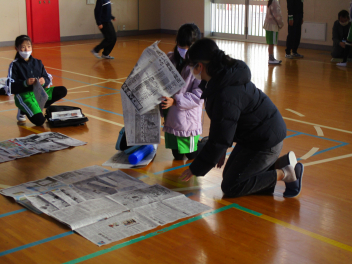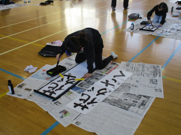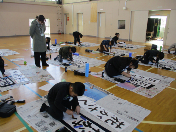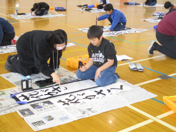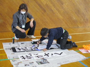 • 3年生の書き初めボランティアに9名の初生小応援団の