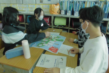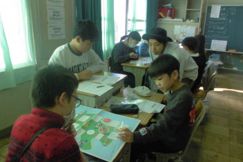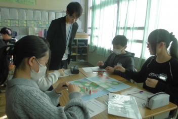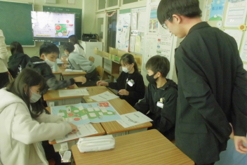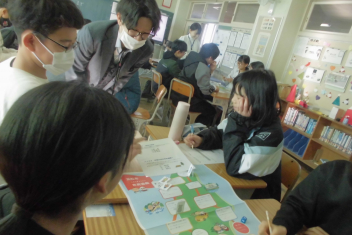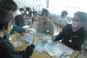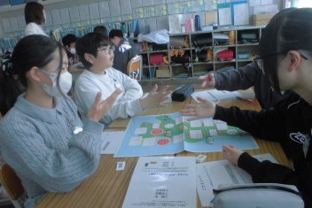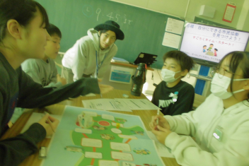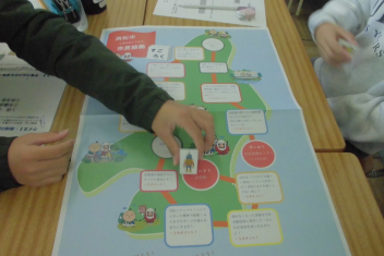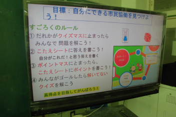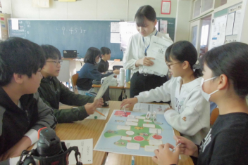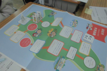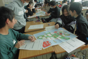 講座の後半には、班の友達と楽しくすごろくをすることを通して、「自分にできる市民協働によるまちづくり」についての考えを広げていきました。frown