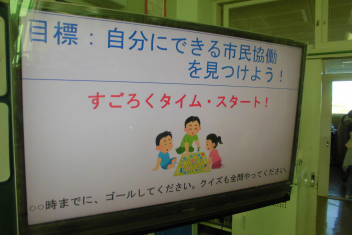 •  6年生は、市民協働・地域政策課の職員と大学生の方を講師としてお招きし、「市民協働講座」を行いました。