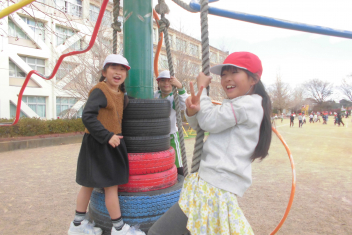 気温がグーンと下がり、寒風が吹く日でも、昼休みにたくさんの子供たちが運動場で元気いっぱい遊んでいます。