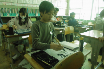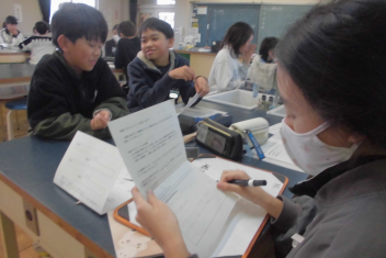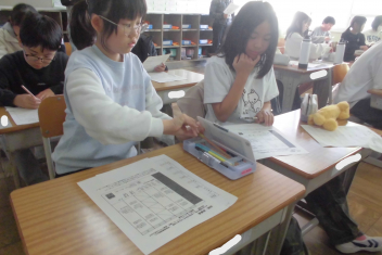 落ち着いた雰囲気の中、集中して取り組んでいます。さすが、初生小学校の6年生です。