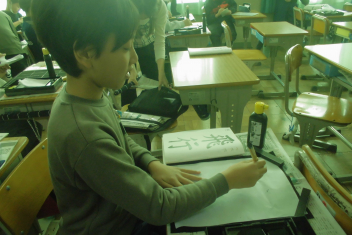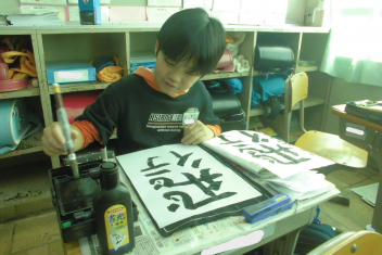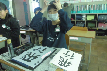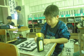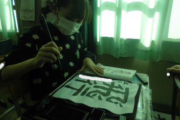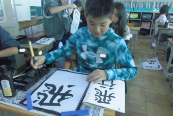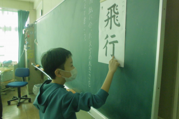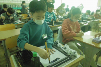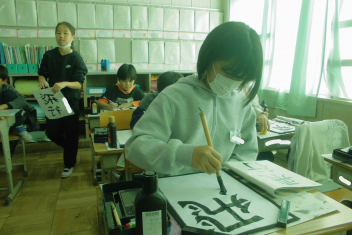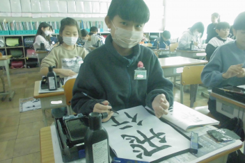 姿勢よく、気持ちを落ち着かせながら、「とめ」「はね」「はらい」等を意識し、一点一画を丁寧に書いていました。