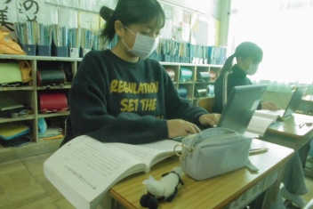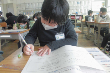 落ち着いた雰囲気の中、集中して学習に取り組む子供たち。立派です。