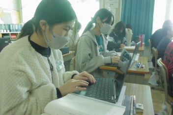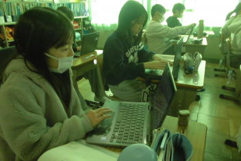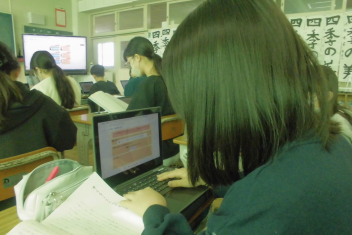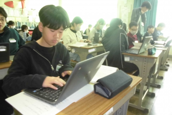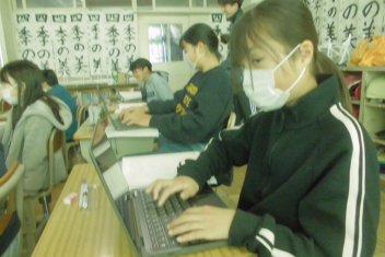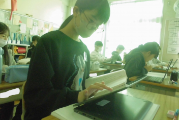 タブレット型端末を活用して、自分の考えをまとめていました。