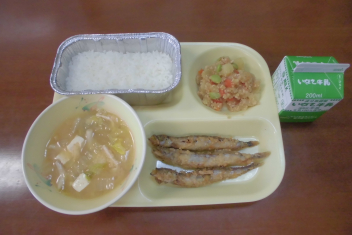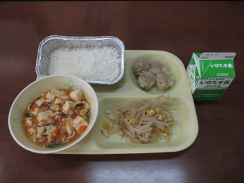 • ごはん、牛  乳、マーボー豆腐、しゅうまい、もやし炒 め