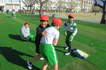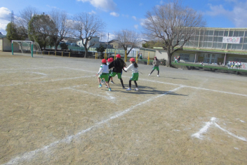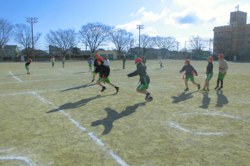 •  4年生は、体育科の学習で「タグラグビー」に挑戦しています。