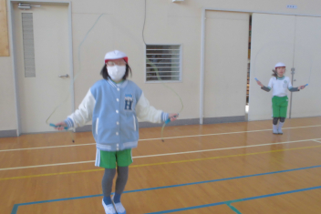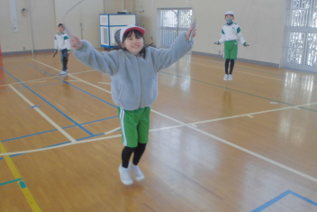 •  2年生は、体育科の学習で「なわとび」に挑戦しています。