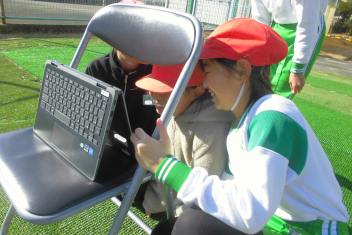 自分たちで考えた忍者の動きを、動画で撮影しながら動きを確認していました。 自分たちが想像する忍者の世界を、友達と協力しながら創り上げています。frown