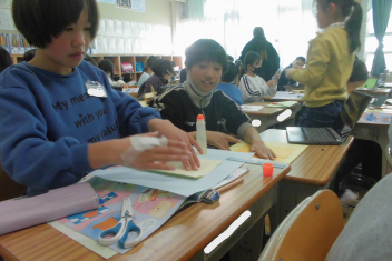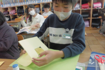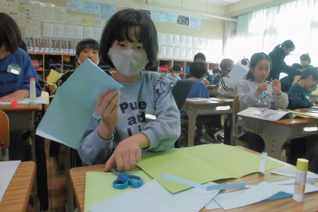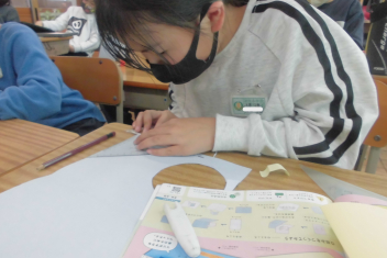 •  4年生は、図画工作科の学習で「メッセージカード」を作成しています。