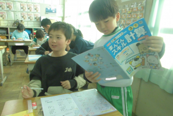 •  3年生は、算数科の学習で「かけ算の筆算」に挑戦しています。