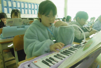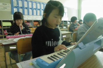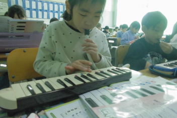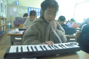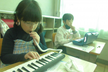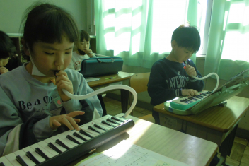 •  2年生は、音楽科「こぐまの 二月」の学習で、鍵盤ハーモニカの演奏に挑戦しています。