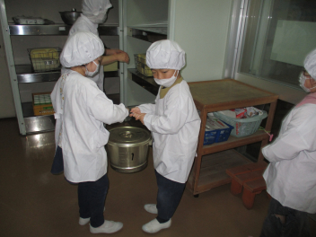 マーボー豆腐 は、中国・四川省 の料理 です。本場 のマーボー豆腐 は、豆板醤 や赤唐辛子 などの香辛料 を使 っているので、とても辛 いのが特徴 です。給食 のマーボー豆腐 は、いろいろな野菜 をみじん切 りにして使 います。味付 けには、豆板醤・浜納豆・赤 みそを使 うことで、辛 さを抑 えてコクのあるマーボー豆腐 に仕上 げました。