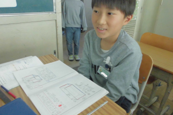 この日は、立体について学習していました。方眼ノートの升目を利用して、立方体や直方体の見取り図を正確に描くことができていました。