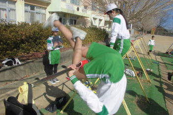 •  6年生は、体育科の学習で「鉄棒運動」に挑戦しています。