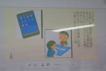1年生の気持ちを想像しながら、「持参する」の言葉を「持ってくる」、「多様な」の言葉を「いろいろな」など、分かりやすい言葉に変換した文章を立派に発表することができました。