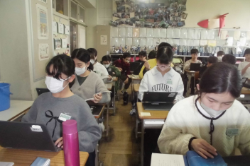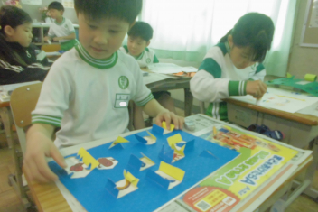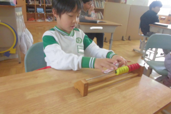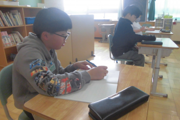 •  落ち着いた雰囲気の中、集中してそれぞれの課題に取り組む子供たちです。frown