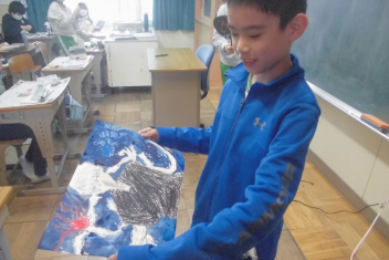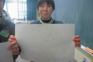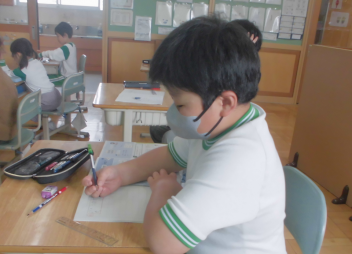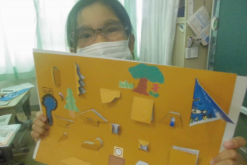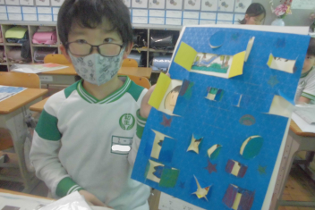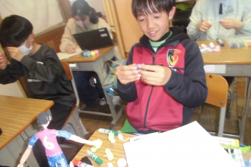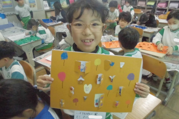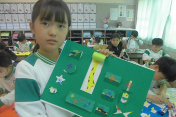 •  2年生の図画工作科の学習の様子です。この日は、完成した作品を紹介してくれました。sad