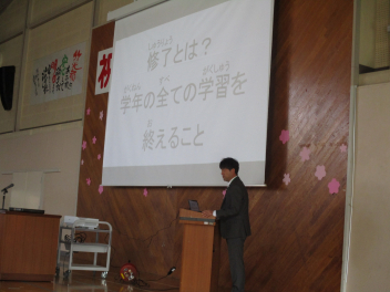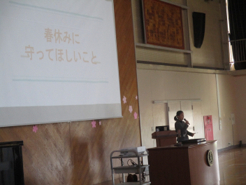 修了式後には、生徒指導担当の先生から、春休みの過ごし方についての話がありました。