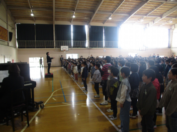 式の最後には、全校で歌う本年度最後の校歌 明るく、元気いっぱいな歌声が体育館中に響き渡りました。