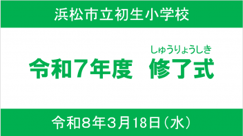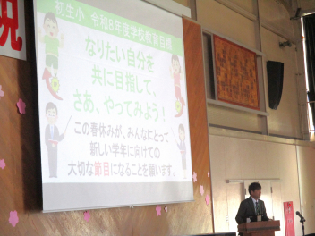 本日、初生小学校を巣立つ卒業生(121名)の皆さん、御卒業おめでとうございます。心よりお祝い申し上げます。