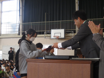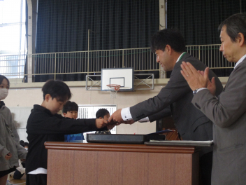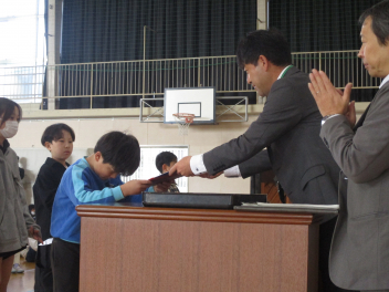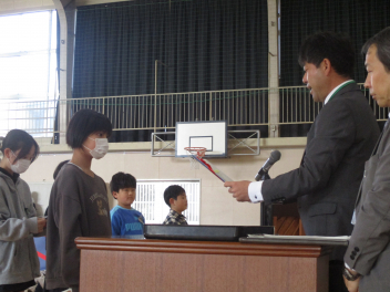 はじめに、各学年の代表の子供たちに、修了証を手渡しました。代表の子供たちは、修了証を堂々と受け取ることができました。