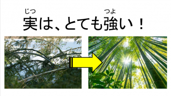 校長の話では、以下のスライドを提示しながら、竹を例に挙げ、「節目」について話しました。