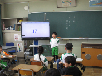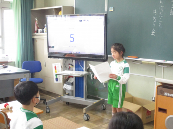 この日、2年生のあるクラスでは、「がんばったことはっぴょう会」を行っていました。
