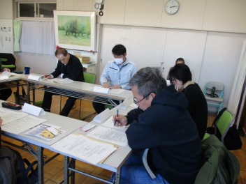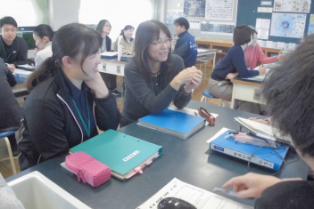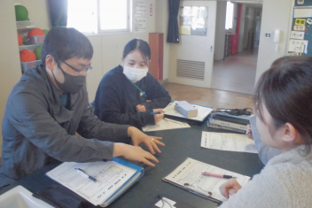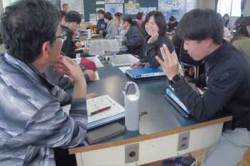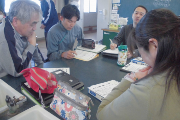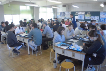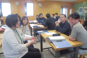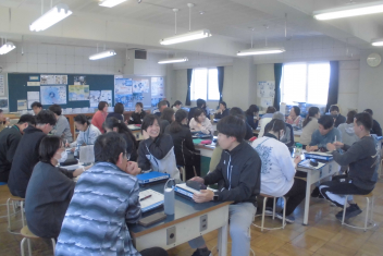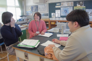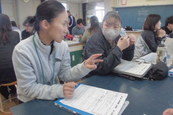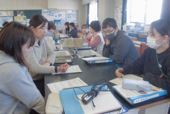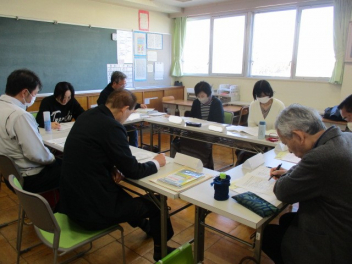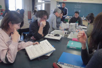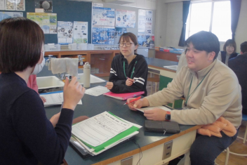 さすが、初生小学校の先生たち!ベテランも若手も分け隔てなく、積極的に意見やアイディアを出し合い、話し合いは大盛り上がり。frown