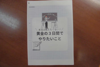 「これは絶対、外せない!」「こんなこともやっている!!」「こんなことをやってみたい!!!」などなど、経験に基づく意見や柔軟な発想から生まれたアイディアが飛び交いました。そして、先生たちの思いが詰まった「黄金の3日間でやりたいこと(初生小学校版)」の冊子ができました。