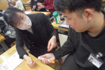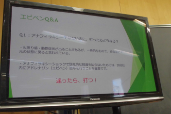 •  養護教諭の先生と学校医の薬剤師の先生に講師をお願いして、エピペン研修会を行いました。