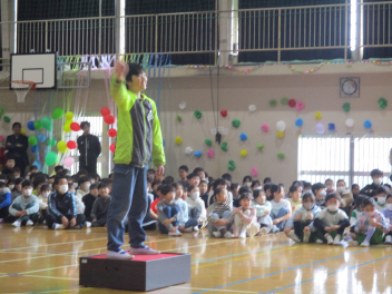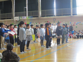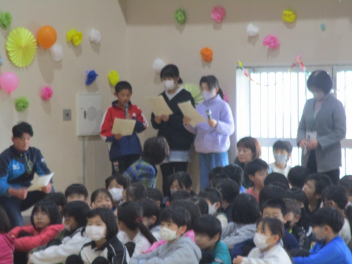 2年生は、6年生が低学年だった頃のクイズを出して、6年生への感謝の気持ちとエールを送りました。