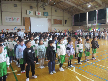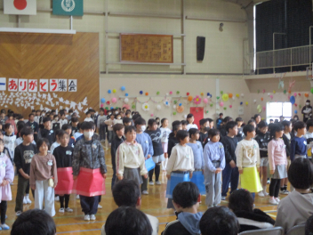 プレゼンを渡した後、全校で「ありがとう」の歌を気持ちを込めて歌いました。