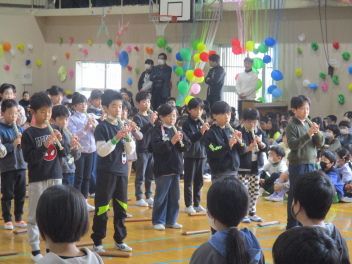 3年生は、リコーダーとダンスを通して、6年生への感謝の気持ちとエールを送りました。