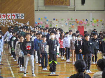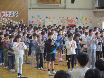5年生を中心に、1年生、2年生、3年生、4年生のみんなが、心を一つに合わせ、お世話になった6年生への感謝の気持ちと