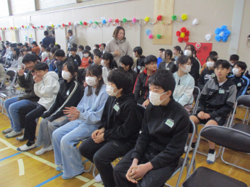 •  2月26日(木)に、3年生が学年集会を開きました。