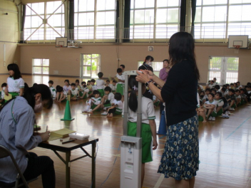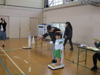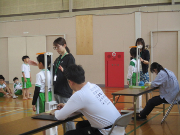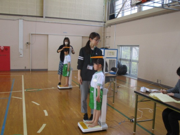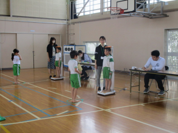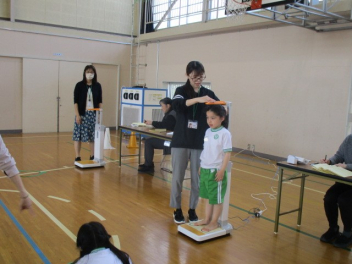 •  1・3・5年生の身体測定がありました。1年生にとっては、小学校生活初めての身体測定。少しドキドキしながらも、しっかりと身長と体重を測ることができっました。